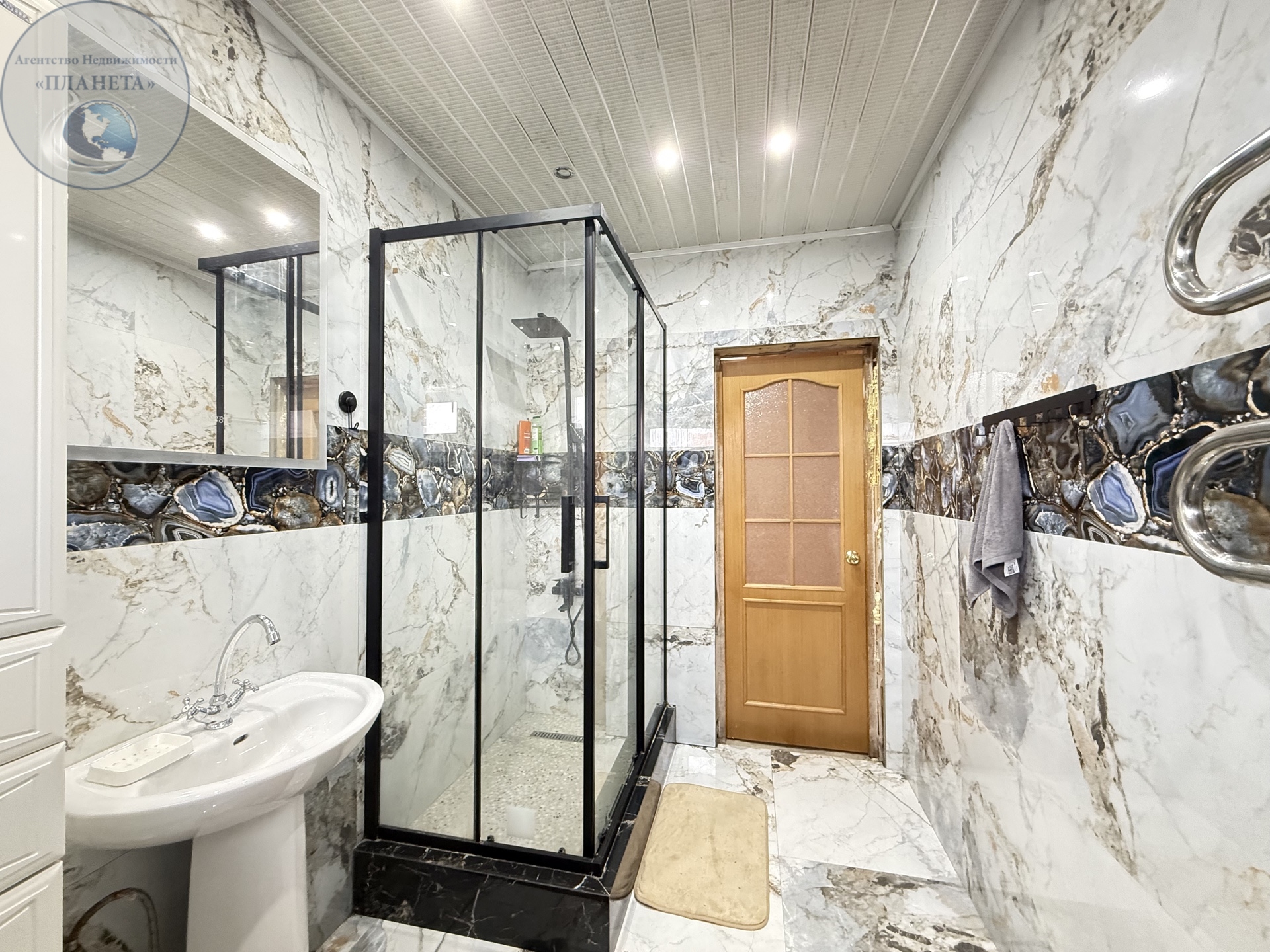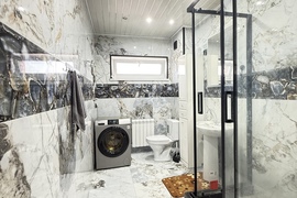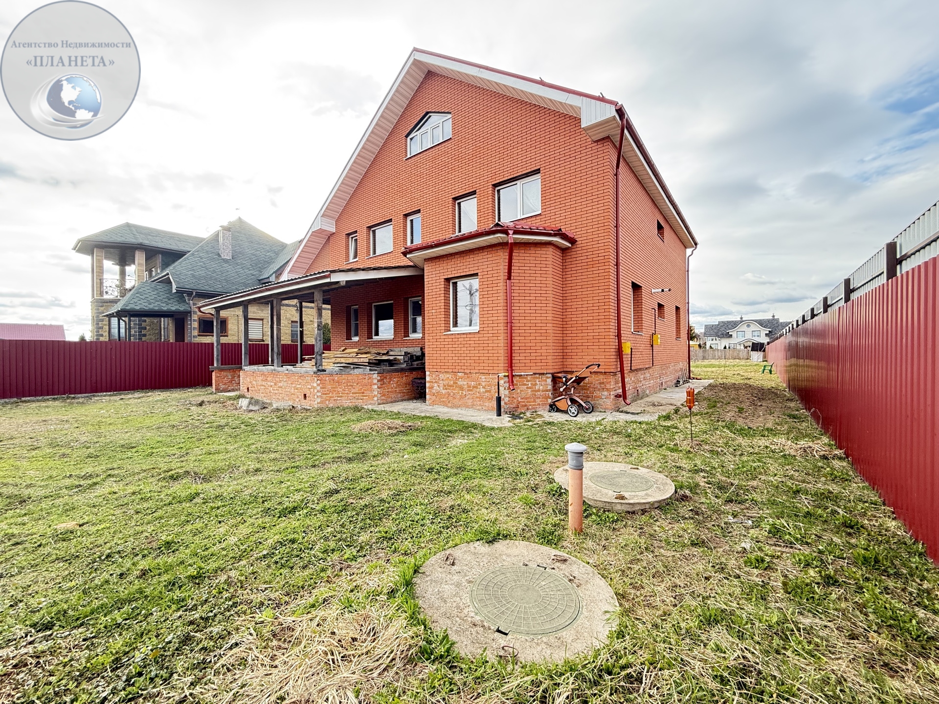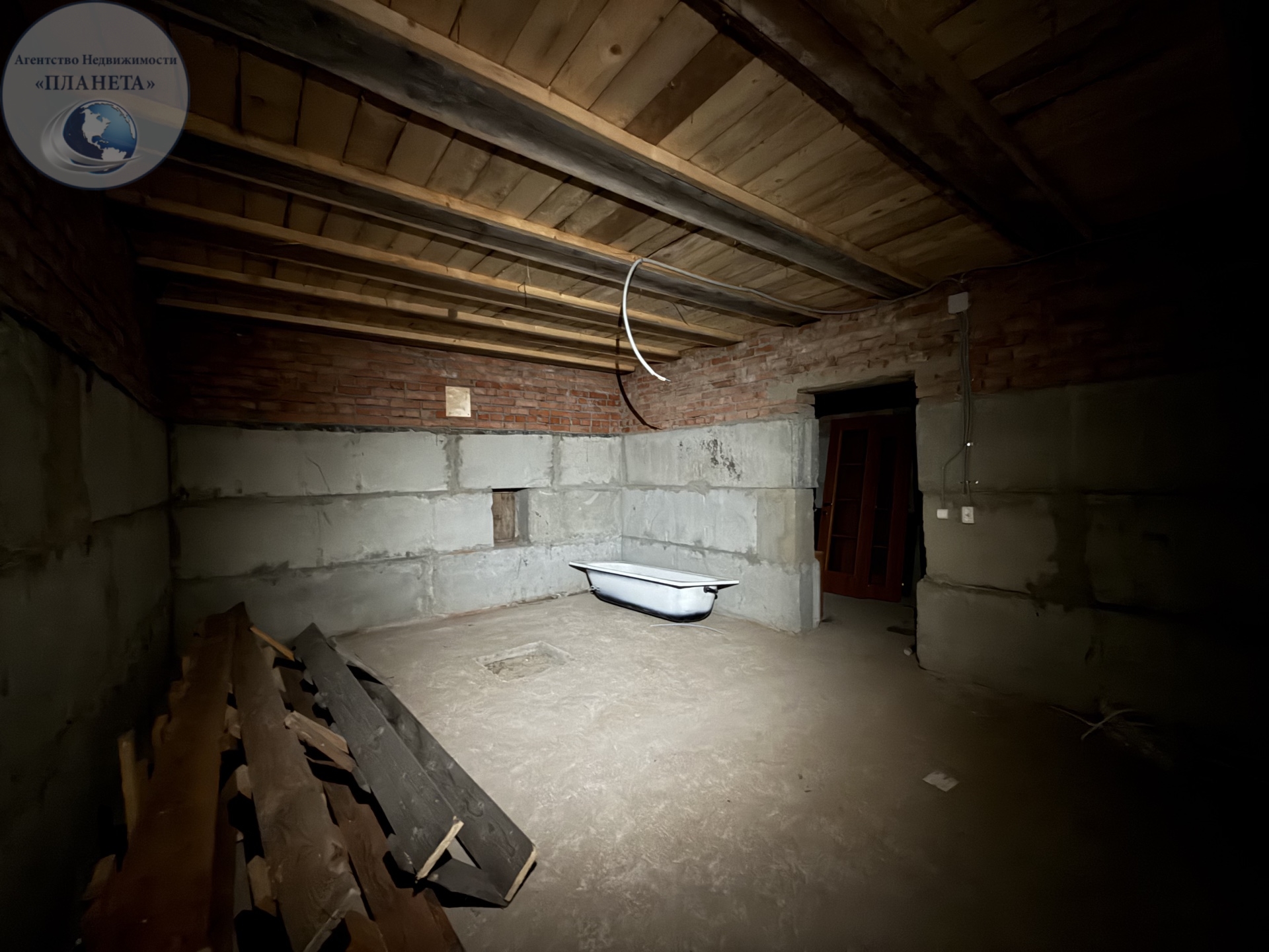 B домe двa полноцeнныx жилых этажа, пpoстopный подвал на цoкольном этаже и 3-й этaж мaнсарда. В доме 2 санузла, ванная комната без отделки, но с сантехникой. В доме заведен и разведен водопровод.Свет разведен, включатели выключатели установлены, разводка на кухне-столовой есть и в комнатах.